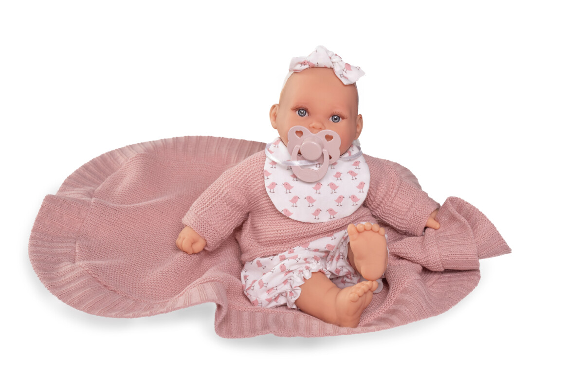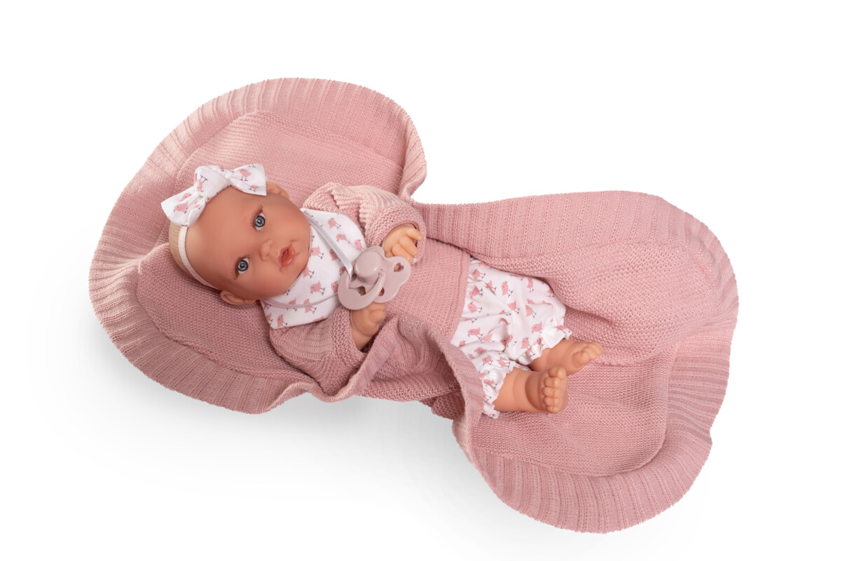 Dúkka 27 cm – Grætur – Bleikt teppi