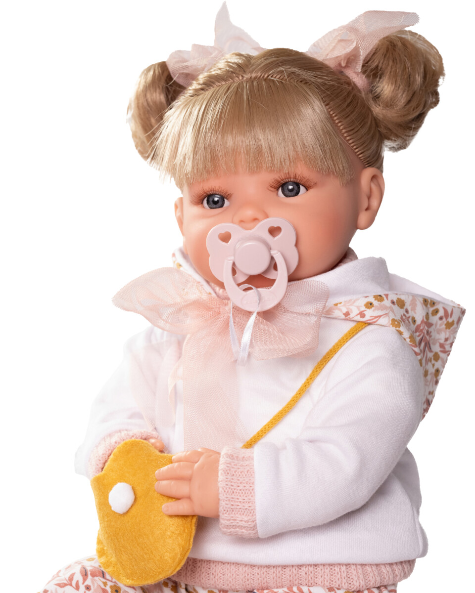 Gullfalleg dúkka með hljóðum, hún grætur og segir Mama og Papa